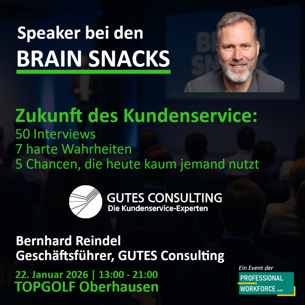Bernhard Reindel ist Geschäftsführer von GUTES Consulting und begleitet Unternehmen an den Schnittstellen von Kundenservice, KI und Callcenter-Outsourcing. Er berät Entscheider dort, wo Kosten sinken müssen, Dienstleister nicht liefern oder Qualität spürbar fehlt. Mit langjähriger Erfahrung in operativer Steuerung, Prozessoptimierung und anspruchsvollen Transformationsprojekten macht er komplexe Serviceorganisationen wieder leistungsfähig – klar, pragmatisch und messbar wirksam.